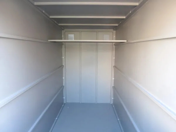 床には滑りにくく、丈夫な縞鋼板を採用しております。重量のあるバイクでも安定した収納が出来ます。