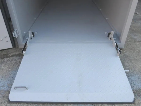幅広で折り畳み式のスロープを標準装備。バイクの出し入れがスムーズに行えます。